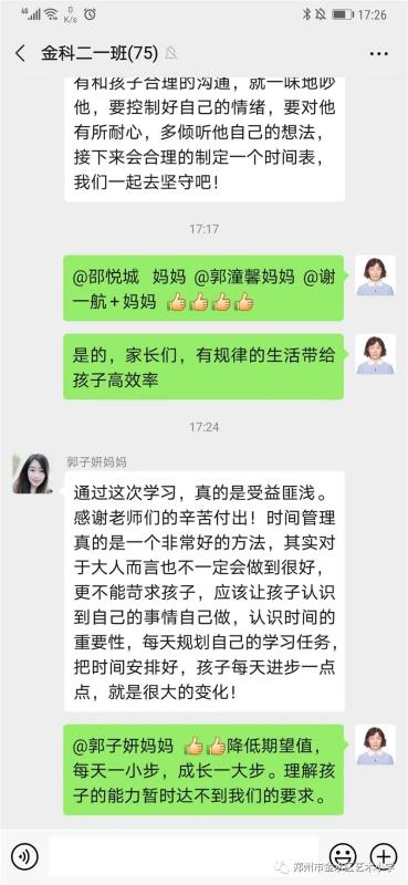 活动结束后,家长们纷纷发来了学习感受,在培养孩子良好时间管理能力方面获得了极大的帮助,对此次活动效果给予一致好评。