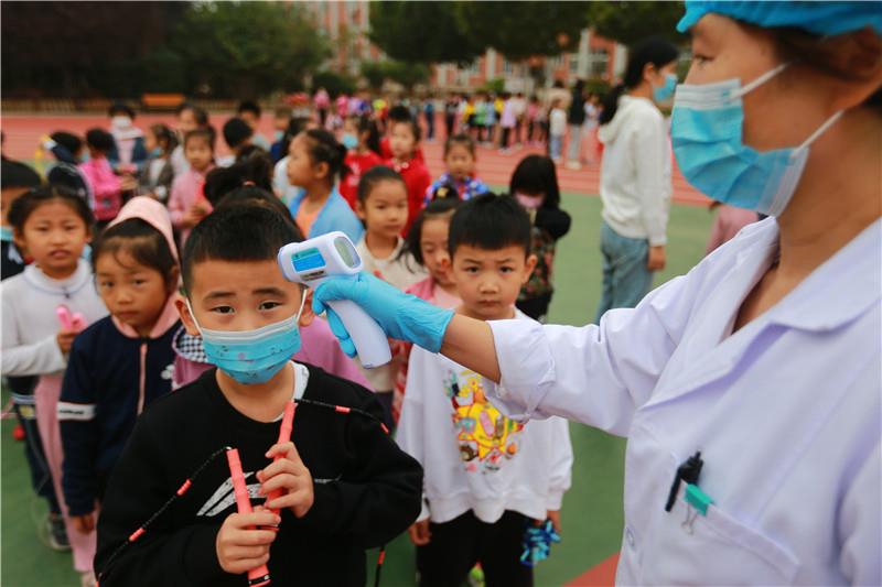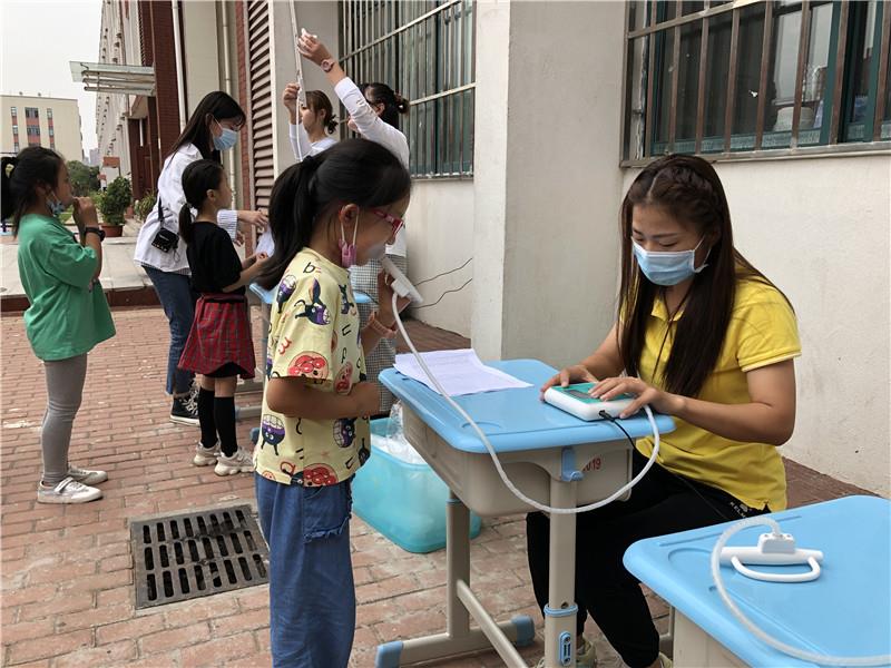 由于本次测试是在疫情防控常态下开展,学校高度重视此项工作,并成立了以赵纪军校长为组长的测试工作领导小组,由教导处和体育组负责组织和开展。整个测试按照疫情防控的要求准备充分、计划周密、规范有序。将年级、班级充分细致规划,班主任、副班主任及科任教师有序组织学生,项目测试教师严格、认真为学生们进行各项体质健康项目的测试,并记录真实的数据。测试项目包括:50米跑、50*8往返跑、坐位体前屈、一分钟跳绳、一分钟仰卧起坐、身高体重、肺活量、视力等。学生们兴趣盎然,努力认真。