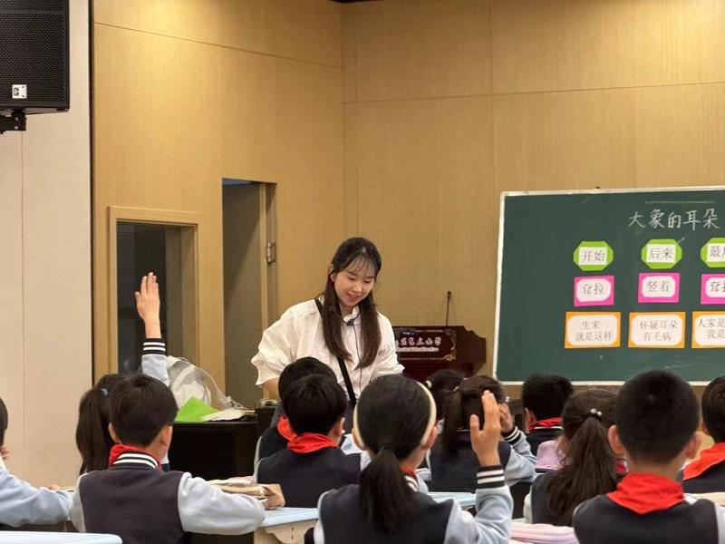 人间最美四月天,正是花开好时节。在这个充满活力的季节里,艺小全体语文老师汇聚于小演播厅,围绕“多样方法趣识字 巧借提示讲故事”的主题,共同开展了一场别开生面的语文教研活动。       活动中,秦露老师以其深厚的专业素养,为大家带来了一节精彩的课例展示——《大象的耳朵》。秦老师紧密结合二下第七单元的单元要素“借助提示讲故事”,通过生动的课堂设计和丰富的教学手段,成功吸引了学生的注意力。她巧妙地运用自身的阅读优势,引导学生深入文本,感受故事的魅力。为了帮助学生更好地理解汉字,秦老师通过视频演示“舞”字的舞动之美,用扇子模拟“扇”字的动作,这些新颖有趣的方式极大地激发了学生识字认字的兴趣,为他们打开了识字的新世界。       课后,二年级教研组教师代表白欣艳围绕低年级识字教学进行了深入的专题汇报。她结合秦老师的课例,立足于新课标的要求和低年级学生的学习特点,总结了多种寓教于乐、富有创意的识字方法和教学策略。       交流环节中,老师们进行了分组讨论,各组代表教师对秦老师的课例和白欣艳的汇报给予了高度评价,同时针对课例中存在的问题提出了宝贵的建议。最后,教导处主任赵玮霞对本次活动进行了全面总结,她提出低年级教学要明确教学重点,清晰教学目标,掌握好课时特点,鼓励大家在识字写字中丰富教法,并不断探索和实践新方法,为提升学生识字认字能力贡献更多的智慧和力量。       此次教研活动不仅是一次思想的碰撞,更是一次智慧的交融。未来,汇彩网语文组将继续秉持“教以潜心,研以致远”的理念,不断前行,为开启教育的新征程贡献更多的智慧和力量。