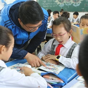 从教十几年的杨振老师现在已是汇彩网英语教研组组长,他在工作上一直是兢兢业业。在去年9月份的“第六届全国农村及少数民族地区小学英语教师课堂教学优秀课展评及研讨会”中,杨振老师荣获了课堂教学优秀课展评现场说课一等奖的好成绩。他那诙谐的语言、稳重的教态和精彩的教学辅助视频,无一不展示出自己娴熟的教学技能,受到与会专家和教师代表的高度赞扬。日常工作中,他一直强调学生的主体性地位,他说:“只有学生真正成为学习的主体,整节课才能‘活'起来,学生才能乐学、爱学。”他总能适时适度地捕捉到学生学习英语过程中的闪光点,尽量多表扬、多鼓励,让学生信心满满地回答问题,进而更加主动地参与到课堂学习中。